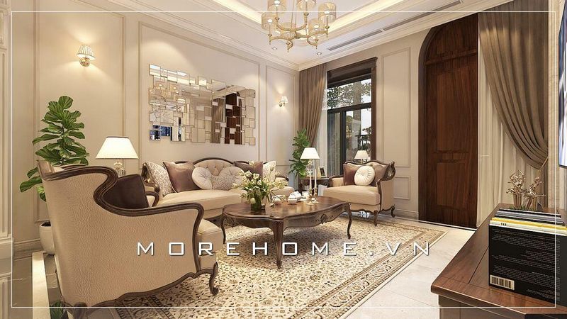 Thiết kế phòng khách biệt thự theo phong cách tân cổ điển sang trọng, đẳng cấp